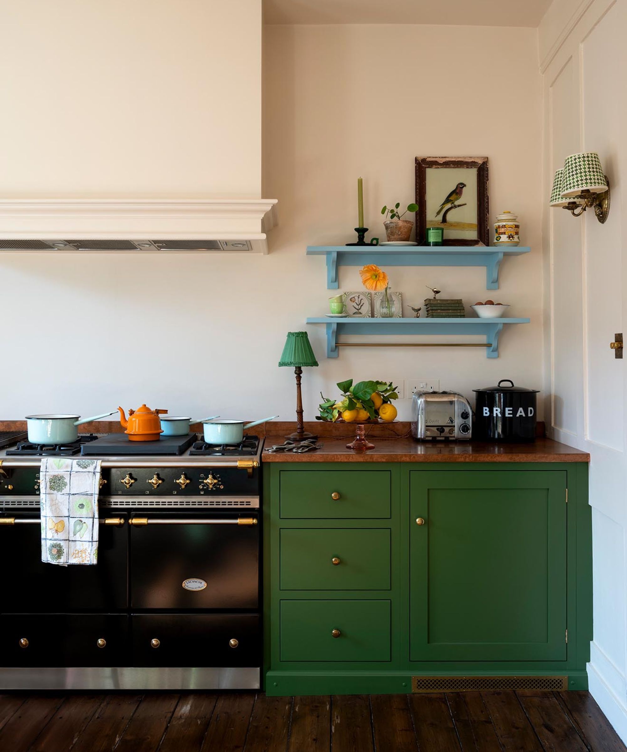 ‘Open shelving is perfect for the person who loves to put their favorite treasures and found objects on display. I also love open shelving as a way to create a sense of space and expansiveness in small kitchens, where upper cabinetry can feel heavy and crowded,’ Kathy adds.