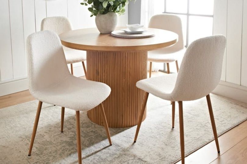 “Featuring an irresistibly soft teddy fabric, this set of four dining chairs combines modern design with cosy texture for the perfect chic and snug look.