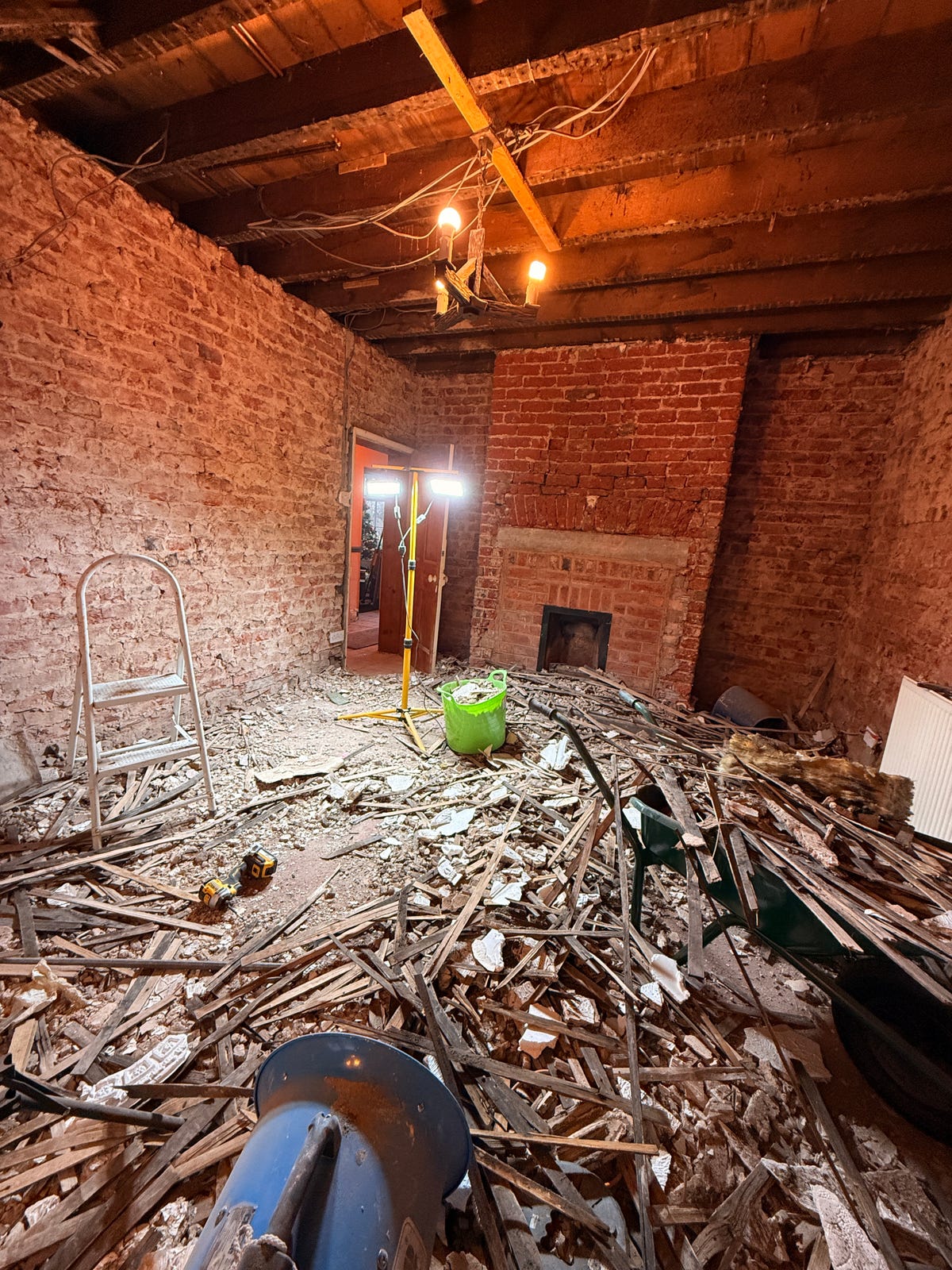 It’s awful. That’s why we can’t move in. The dust is just so bad. Since putting it on my Insta, people keep messaging, saying, ‘We’ve had health issues, we’ve had this, we’ve had that – because of damp, or the dust.’ I think, oh my god. It’s not worth our health. Once all the dusty stuff has stopped, then we’ll move in and replaster.